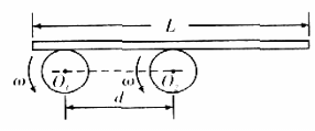 =8.0 rad/s匀速同向转动,两轮的转动轴在同一水平面上,相互平行,距离d =1.6 m . 一块均匀木板条轻轻平放在两轮上,开始时木板条的重心恰好在右轮的正上方. 已知木板条的长度L>2d,木板条与轮子间的动摩擦因数μ=0.16 木板条运动到重心恰好到达左轮正上方所需的时间