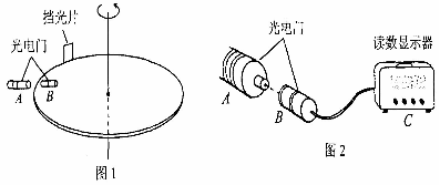 一水平放置的圆盘绕过其圆心的竖直轴匀速转动。盘边缘上固定一竖直的挡光片。盘转动时挡光片从一光电数字计时器的光电门的狭缝中经过,如图1