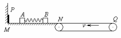 18.(20分)如图所示,光滑水平面MN上放两相同小物块A、B,左端挡板处有一弹射装置P,右端N处与水平传送带理想连接,传送带水平部分长度L=8m,沿逆时针方向以恒定速度v=6m/s匀速转动。物块A、B(大小不计)与传送带间的动摩擦因数