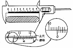 (2)(4分)有一游标卡尺,主尺的最小分度是1mm,游标上有20个小的等分刻度。这种游标卡尺测量长度可以精确到
