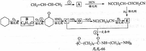 29)尼龙-66广泛用于制造机械、汽车、化学与电气装置的零件,亦可制成薄膜用作包装材料,其合成路线如下图所示(中间产物E给出两条合成路线)。