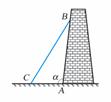 2.如图,长7m的梯子BC靠在斜壁上,梯脚与壁基相距1.5m,梯顶在沿着壁向上6m的地方,求壁面和地面所成的角α(精确到