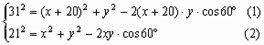 ∠CAD=60°。设AD=x,AC=y。在△ACB和△ACD中,分别由余弦定理得,