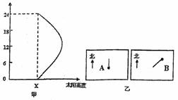 6.甲图中的曲线表示太阳直射点位于Y纬度时某地太阳高度的日变化情况,该地的纬度是