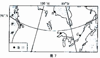 图7为某地区港口分布示意图。完成21~22题。