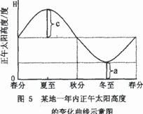 23.图5中,当a、c值相差20°时,该地的纬度值是