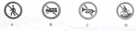 (09山东潍坊).近年来,为了控制噪声污染,改善居民的生活环境,有些城市采取了城区禁止汽车鸣笛、道路两边种花植树、高架桥两侧安装隔声板等措施。下图所示的标志中,表示“禁止鸣笛”的是