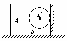21、如图所示,质量为M的直角三棱柱A放在水平地面上,三棱柱的斜面是光滑的,且斜面倾角为θ。质量为m的光滑球放在三棱柱和光滑竖直墙壁之间,A和B都处于静止状态,求: