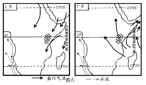 22、甲区域气候一年分干、湿两季,据图判断其形成的主要因素是