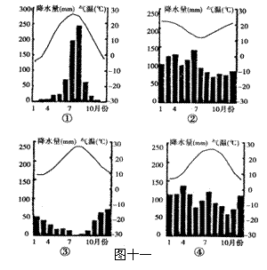 (2)比较①、③两城市气候特征的主要差异。_____________________。(3分)