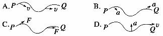 1.质点在一平面内沿曲线由P运动到Q,如果用v、a、F分别表示质点运动过程中的速度、加速度和受到的合外力,下列图象可能正确的是( )