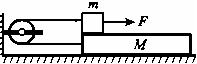 7.如图所示,木板质量为M,长度为L,小木块的质量为m,水平地面光滑,一根不计质量的轻绳通过定滑轮分别与M和m连接,小木块与木板间的动摩擦因数为μ.开始时木块静止在木板左端,现用水平向右的力将m拉至右端,拉力至少做功为( )