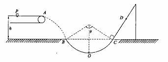 ,轨道最低点为O,A点距水平面的高度h=0.8m。小物块离开C点后恰能无碰撞的沿固定斜面向上运动,0.8s后经过D点,物块与斜面间的滑动摩擦因数为