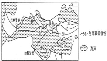 (1)简述地中海地区冬雨率较高的原因 。(4分)