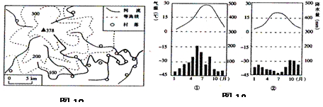 (2)图19的两幅气候统计图中,反映图18所示地区气候类型的是 图。(2分)