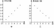 [例5]甲、乙两人连续6年对某县农村养鸡业规模进行调查,提供两个不同的信息图如图所示.甲调查表明:从第1年每个养鸡场出产1万只鸡上升到第6年平均每个鸡场出产2万只鸡.乙调查表明:由第1年养鸡场个数30个减少到第6年10个.