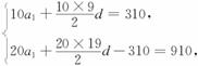 [例3]在等差数列{an}中,已知第1项到第10项的和为310,第11项到第20项的和为910,求第21项到第30项的和.