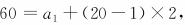 [解] 这个剧场各排的座位数组成等差数列,其中公差d=2,项数n=20,且第20项是a20=60?