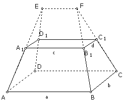 中,上、下底面平行且均为矩形,相对的侧面与同一底面所成的二面角大小相等,侧棱延长后相交于E、F两点,上下底面矩形的长、宽分别为