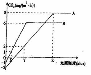 的吸收量超过CO2的释放量。当平均光照强度在X和Y之间(白天和黑夜的时间各为12h),A植物一昼夜中有机物总量的变化是___________,B植物一昼夜中有机物总量的变化是___________。