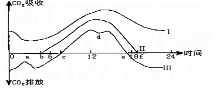 A.在Ⅲ曲线与时间轴交点c和e时,光合作用吸收的CO2和呼吸作用释放的CO2量相等