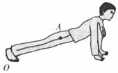 点为O,他的重心在A点,支撑力为F,请画出重力和支撑力F