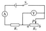 24.在图16所示电路中,电源电压保持不变,定值电阻R1=10Ω, R2为滑动变阻器。闭合开关S,当滑片P在a端是,电流表的示数为0.3A;当滑片P在b端时,电压表示数为2V.