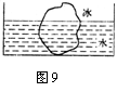 16.如图9所示,一块0℃的冰放在盛有0℃的水的容器中。已知冰块与容器底部相接触并相互间有压力,则当冰完全融化为0℃的水后.容器中水面的位置将( )