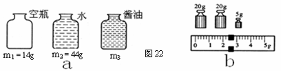 (1)他第三次测得物体的质量如图22b中砝码和游码所示,其结果m3= g。