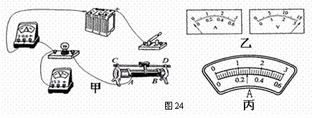 V,若此时电流表的示数如图24(丙)所示,其示数为 A,那么小灯泡的额定功率是 W。