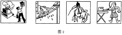 电器失火时先切断电源 湿衣服晾在电线上 用湿布擦抹电器 用电器未加接地保护