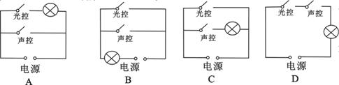 17.楼道里,科研人员利用光敏材料制成“光控开关”,天黑时自动闭合;天亮时自动断开.利用声敏材料制成“声控开关”,当有人走动发出声音时,自动闭合;无人走动时,自动断开.若将这两个开关配合使用(如图7),就可以使楼道灯变得“智能化”,这种“智能”电路正确的是 ( )
