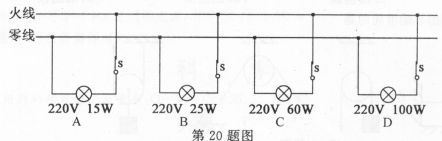 20.闭合开关后,下图中的四个灯泡都正常发光,其中最亮的是