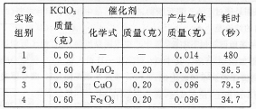 小明查阅资料得知,CuO、Fe2O3等氧化物也能对KClO3的分解起催化作用。小明想知道它们的催化能力是否相同,在实验室进行相关实验,获得实验数据如下表:
