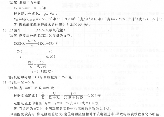 (3)参加护航的“武汉号”是我军编队中一艘现代化的军舰,军舰满载时重7.5X107牛,则满载时军舰排开海水的体积为多少米3?(海水的密度ρ=1.03X103千克/米3,g取10牛/千克)(计算结果保留两位小数)