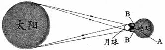 紫金山天文台2009年6月13日通报:2009年7月22日,我国将出现500年一遇的日全食奇观。能够解释日食现象的是光的___________传播理论。如图所示,位于地球上A区域的人看到的是日_____食,位于B区域的人看到的是日______食。