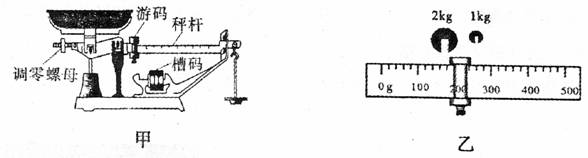 23.(4分)要测量物体的质量,实验室中常用__________。生活中有时也用如图甲所示的案秤,它们的工作原理相同。使用案秤时,应先将游码移至秤杆左端______刻度线处,此时若秤杆右端上翘,应将调零螺母向_______ (填“左”或“右”)调,使秤杆在水平位置平衡。某次测量,槽码和游码的位置如图乙所示,则被测物体的质量是________Kg。