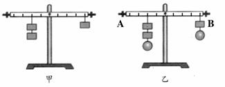 13.图甲所示的杠杆是平衡的。若如图乙所示,在支点两侧的物体下方分别加挂一个等重的物体,杠杆