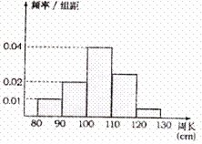15.为了解一片经济林的生长情况,随机测量了其中100株树木的底部周长(单位:cm)。根据所得数据画出样本的频率分布直方图(如右图),那么在这100株树木中,底部周长小于110cm的株数是 .