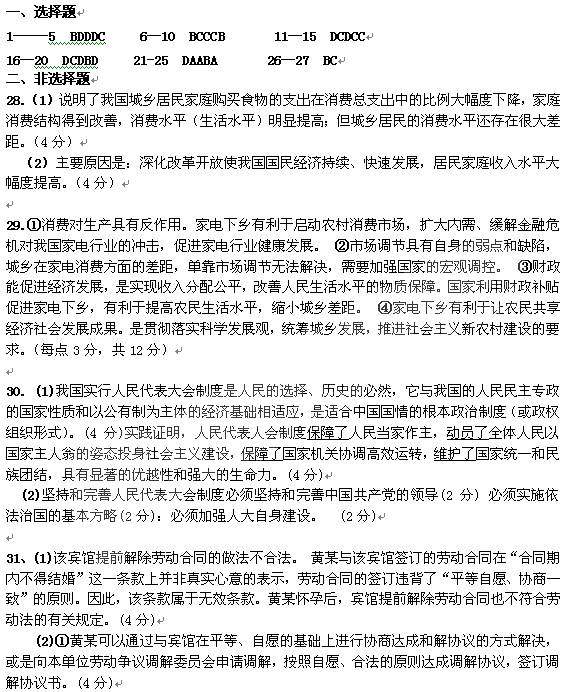 (2)简要说明城乡居民恩格尔系数下降的主要原因。(4分)