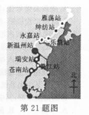 (1)右图标出了温福、甬台温铁路在温州境内的八个站点,据图可知苍南站位于新温州站的 方向。