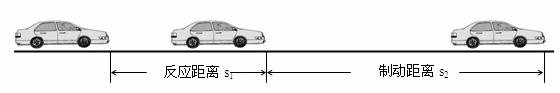 行驶时,测得的反应距离和制动距离。