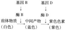 色色素,此过程由B、b和D、d两对等位基因控制(如图所示),两对基因不在同一对染色体上。其中具有紫色色素的植株开紫花,只具有蓝色中间产物的开蓝花,两者都没有的则开白花。下列叙述中,不正确的有( )