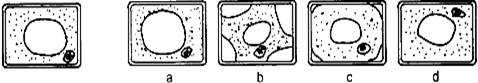 植物细胞(如左图所示),置于不同浓度的蔗糖溶液中,出现右侧a-d四种细胞状态,