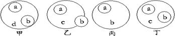 D.丁图可体现出细胞(c)、核糖体(a)和线粒体(b)的关系