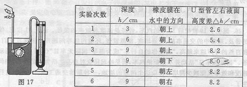 24.(09烟台)下表是小明同学利用图17所示的实验装置探究液体压强规律时所测得的部分数据.
