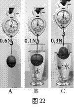 (09福州市)29.翔翔在家探究鸡蛋受到的浮力大小与哪些因素有关,如图22所示。请仔细观察图示并回答下列问题: