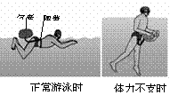 (09台州).有一种被称作“跟屁虫”的辅助装备是游泳安全的保护神。“跟屁虫”由一个气囊和腰带组成,两者之间由一根线连接。正常游泳时,连接线是松驰的,气囊漂浮着,跟人如影相随。在体力不支等情况下,可将气囊压入水中,防止人下沉,在此情况下