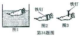 乙:也用同样的铁钉,但只将其一半插入萝卜中(如图3所示),将萝卜浸没水中松手,发现萝卜叶沉入水底。