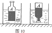 (09威海)(多选题).向一个质量可以忽略不计的塑料瓶中装入密度为ρA的液体后密闭,把它分别放在盛有密度为ρ甲.ρ乙两种液体的容器中,所受浮力分别为F甲.F乙,如图10所示,下列判断正确的是: